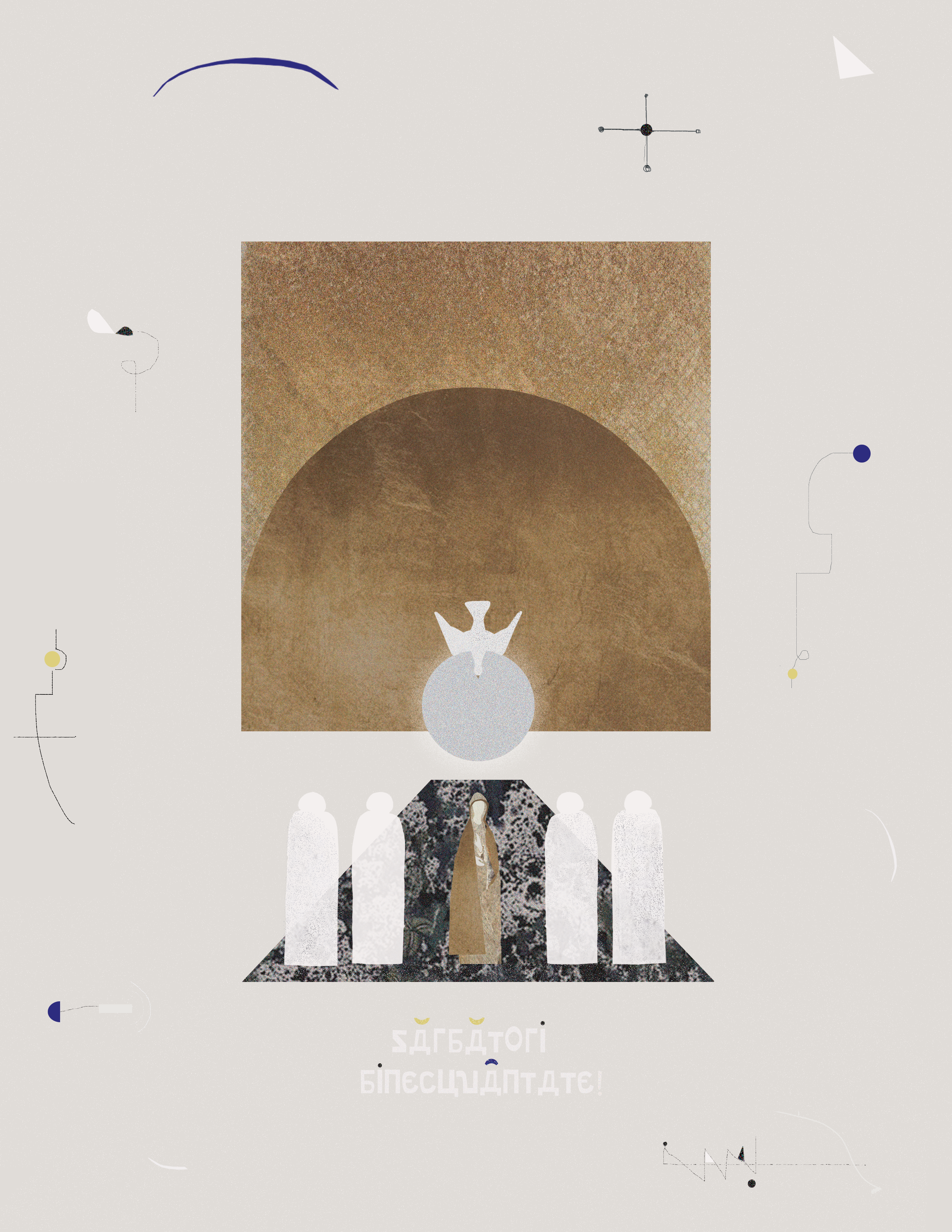 A visual meditation on Pentecost โ a moment where stillness meets spirit. The scene suggests descent without weight. Figures stand in quiet readiness, while an invisible presence takes form above. This composition explores the invisible bonds that unite, the breath between gestures, and the mystery of shared understanding without words.