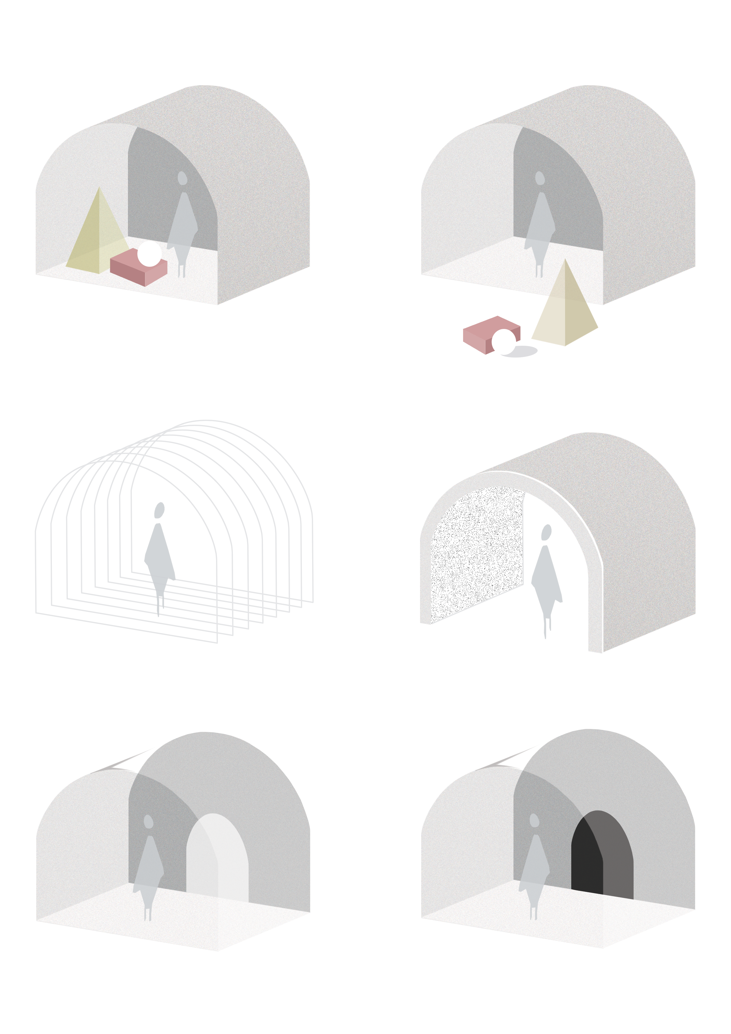 The second series intensifies the level of subjectivity, as visitors may be influenced not only by the spatial manipulations but also by their own prior experiences. This segment underscores how individual backgrounds can interact with environmental elements to shape perceptions in distinct ways. This investigation highlights the dynamics between personal experiences and the architectural features of a space, focussing attention on how interpretations are not merely responses to the physical environment but are deeply intertwined with the viewer's personal history and memories.